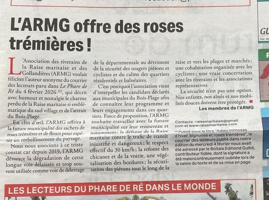 Courrier des lecteurs du Phare de Ré 4 février 2026